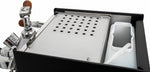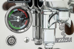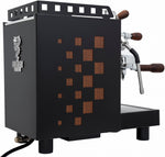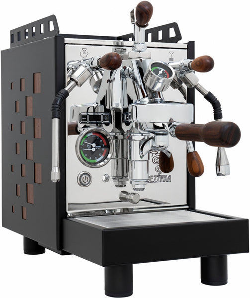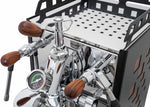 Dual pressure gauges make it easy to read the boiler and brew pressure, while unique box cutouts on the side panels add an extra touch of style.